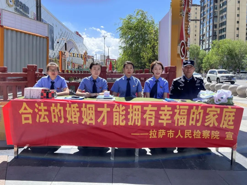 6月17日下午,拉萨市人民检察院在纳金路东郊万达广场,悬挂“合法的婚姻才能拥有幸福的家庭”和“反对家庭暴力,维护妇女儿童合法权益”宣传横幅,开展维护妇女儿童合法权益普法宣传活动。