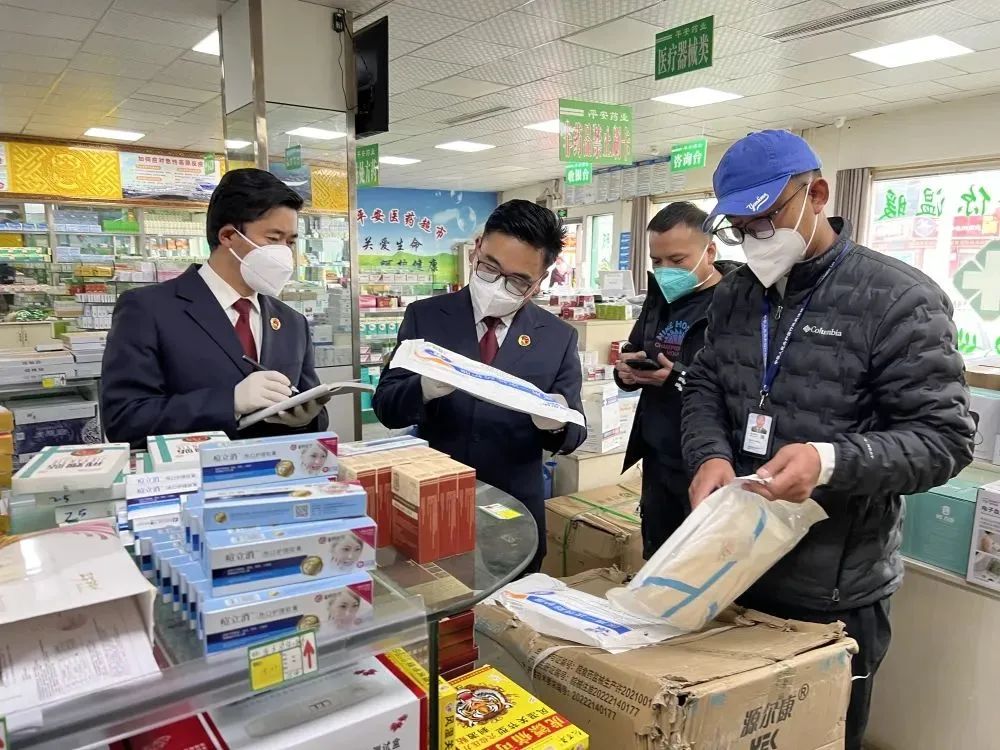 聂荣县检察院、尼玛县检察院与县市场监督管理局在超市、蔬菜店、批发店、餐饮店、药店等进行实地检查。